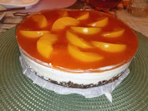 sütés nélküli barackos sajttorta, csokis kekszalappal,
